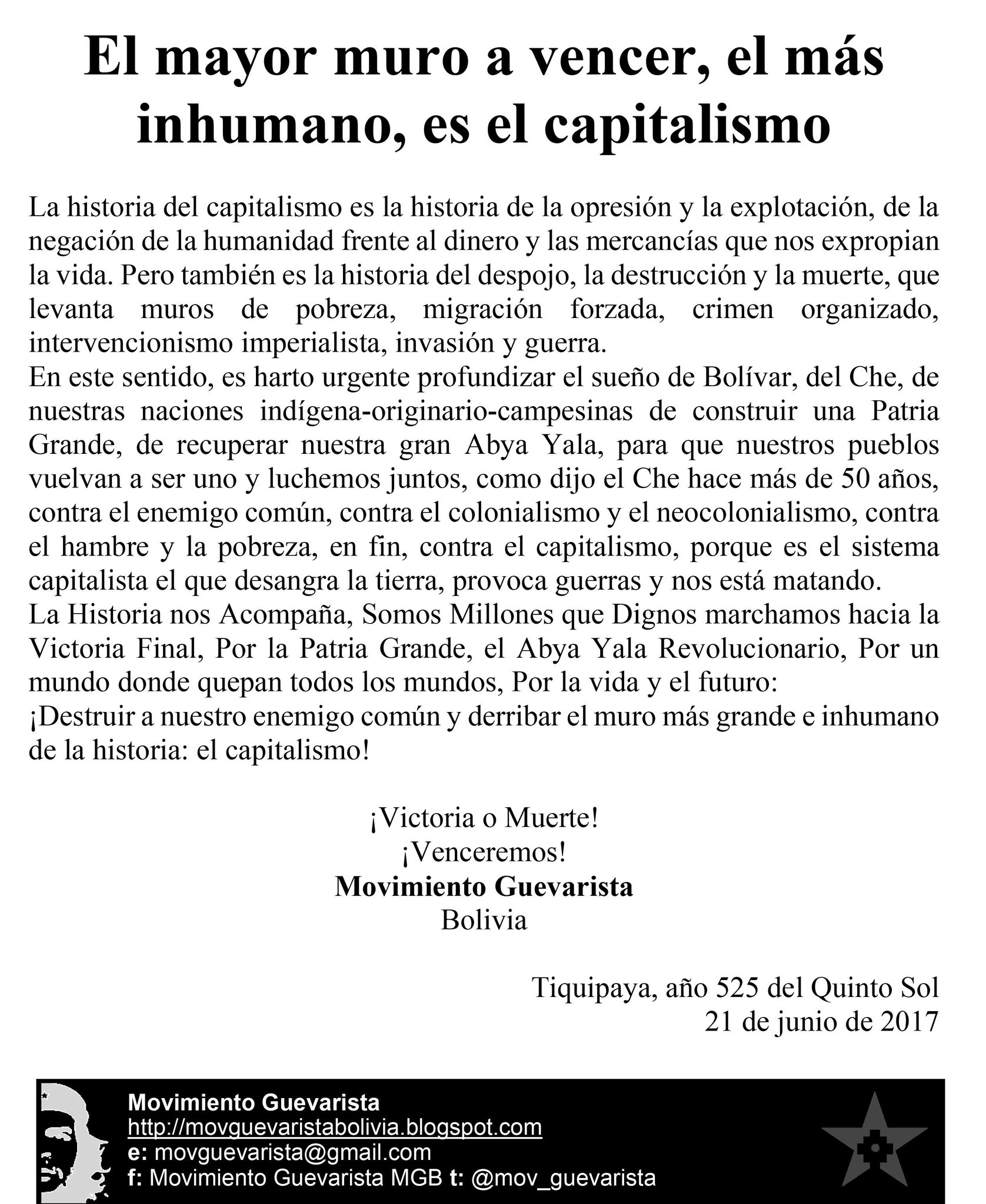 La lucha del pueblo venezolano representa la lucha de los pobres de la tierra y, por tanto, nuestros proyectos revolucionarios se hermanan en la construcción de una sociedad más justa y mejor, donde lo fundamental sea el Poder Popular, y donde, la institucionalidad democrática burguesa, la justicia oligarca y los medios de comunicación capitalistas representan al viejo Estado, al imperialismo y la contrarrevolución, que se debe sepultar.